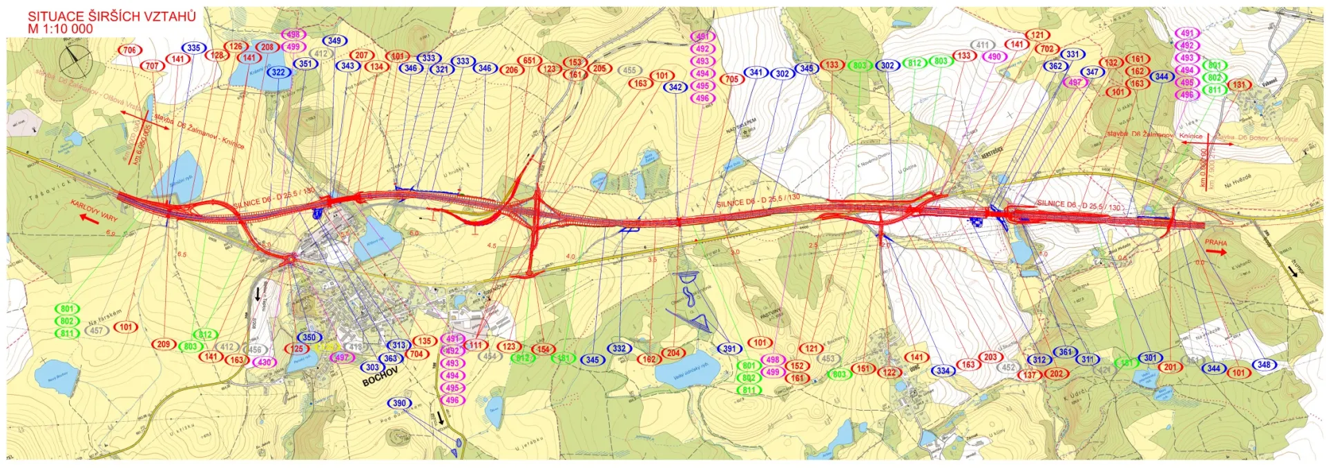 Navržená trasa dálnice D6 jde v celém úseku stavby v nové trase mimo stávající silnici I/6, která bude po dokončení stavby D6 sloužit jako doprovodná komunikace pro vozidla bez oprávnění pro dálnice a silnice pro motorová vozidla. Původní silnice I/6 přejde po zprovoznění tahu D6 do vlastnictví Karlovarského kraje jako silnice II/606.