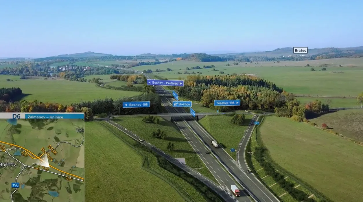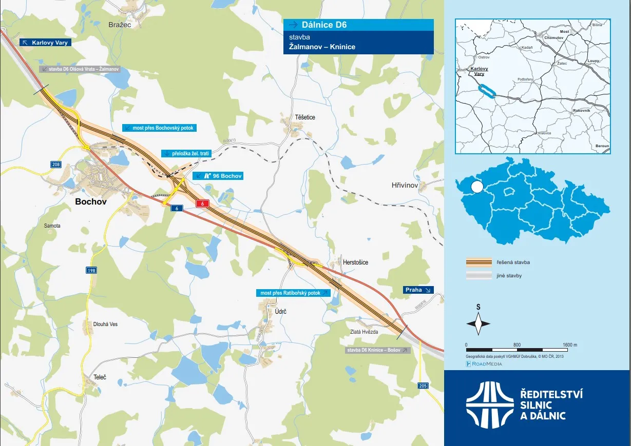 Téměř sedmikilometrový úsek dálnice D6 mezi Žalmanovem a Knínicemi je součástí postupného dokončování dálničního spojení Prahy s Karlovými Vary. Realizace stavby výrazně odlehčí přetížené silnici I/6, která dnes vede přímo přes obce kudy v současnosti projíždí více než 11 tis. aut denně.